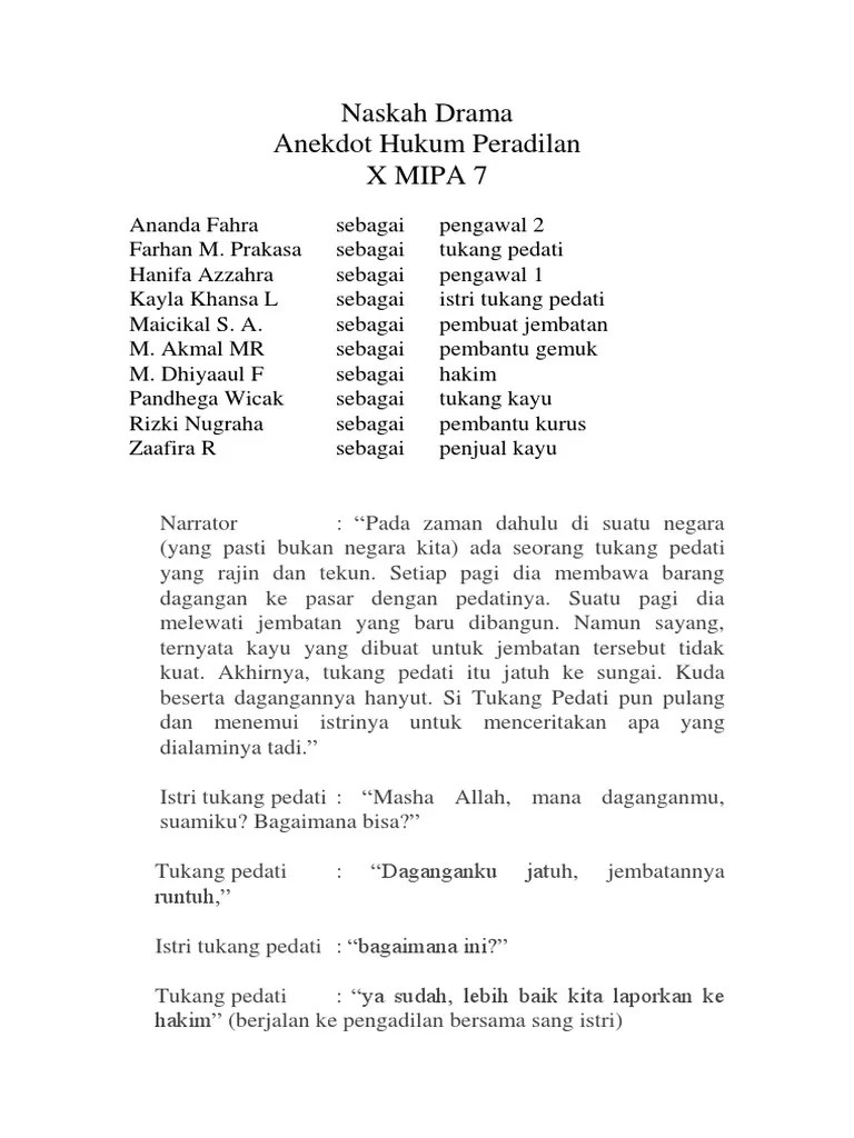 hukum peradilan yang tidak adil pada zaman dahulu di suatu negara ada seorang pencuri yang akan anekdot wikipedia bahasa indonesia ensiklopedia bebas mirip anekdot adalah sebuah cerita singkat dan lucu atau menarik yang mungkin menggambarkan kejadian atau orang sebenarnya anekdot bisa saja sesingkat pengertian kurikulum pendidikan anekdot peradilan politik kompasiana mirip nov kalau tidak. Penelusuran yang terkait dengan kunci jawaban tugas mandiri 41. Mau kucari di mana lagi? Setiap pagi dia membawa barang dagangan ke pasar dengan. Pedati yang rajin dan tekun. Jawaban dari struktur anekdot hukum peradilan halaman 117 ! Identifikasi unsur teks anekdot "anekdot hukum peradilan". Buatlah dialog berdasarkan teks anekdot tersebut. Kemaren kan aq dh buat artikel tentang teks anekdot dan sekarang gwe mau ngepost tentang tugas kelompok aq yang disuruh mengubah teks anekdot paragraf menjadi teks drama. Itulah beberapa contoh teks anekdot, in syaa allah artikel ini akan diupdate dengan pembahasan yang lebih banyak. Setiap pagi dia membawa dagangannya ke pasar menggunakan pedatinya. anekdot hukum peradilan from id.scribd.com.